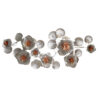Dekorative Wandgestaltung mit Metallblumen in Silber und Kupfer